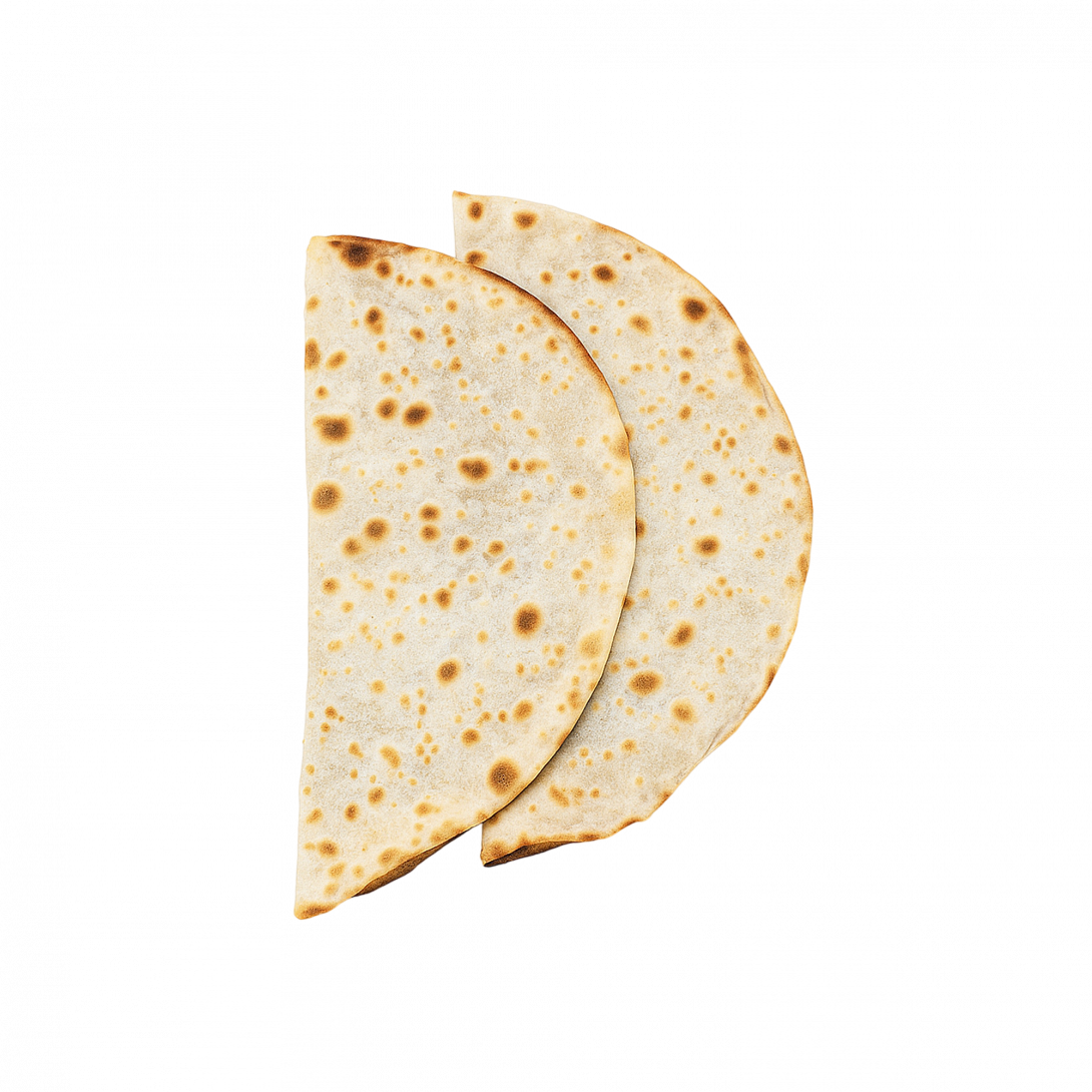 Тонкие лепёшки с ароматной мясной начинкой из курино-говяжьего фарша, пикантной аджикой, чесноком и сыром. Запекаются до хрустящей корочки и подаются горячими. Восточный акцент с тягучим сыром.
