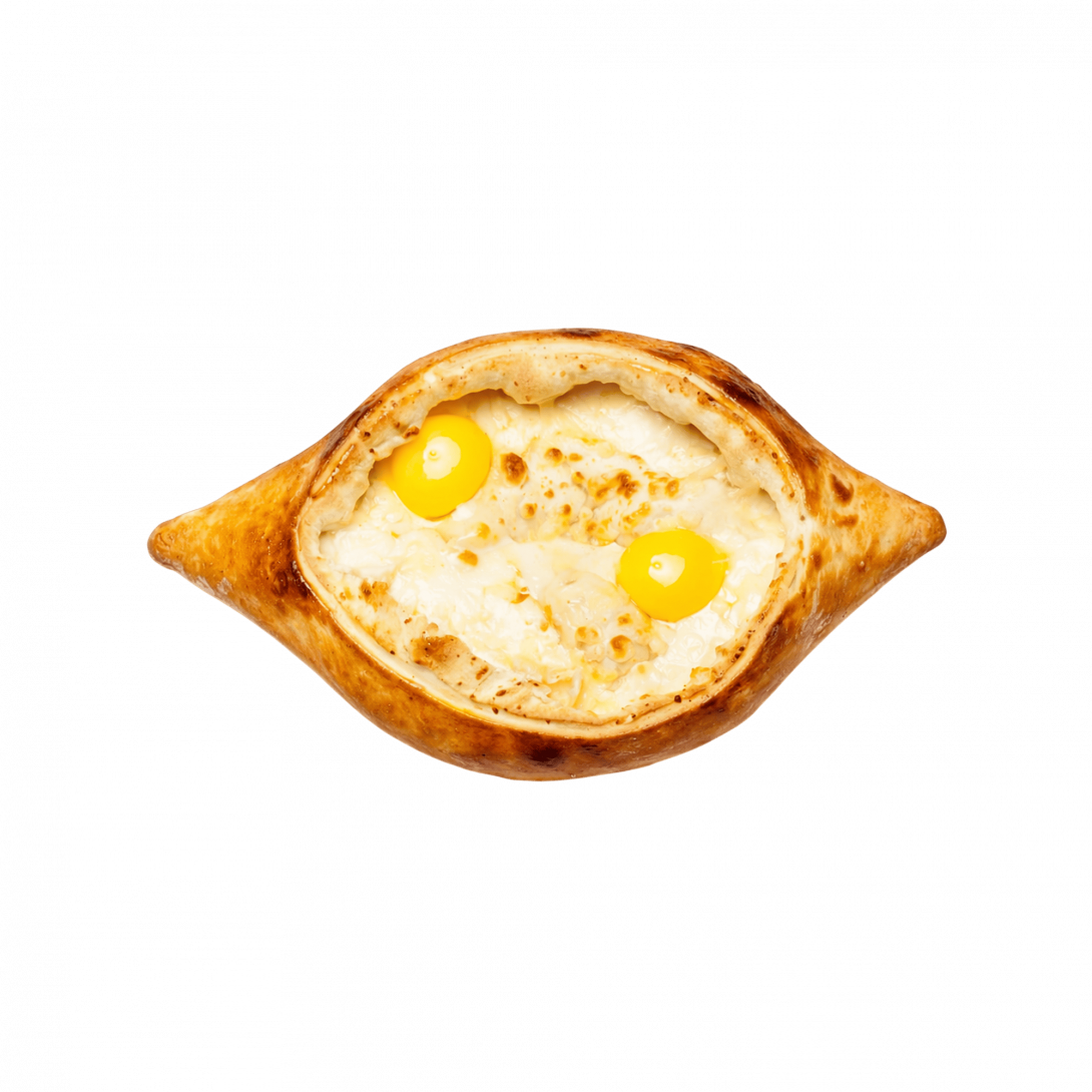 Щедрый, сытный хачапури в авторском исполнении — с тремя видами сыра, яйцом и маслом. Аппетитная корочка и тянущаяся начинка делают его настоящим хитом.
