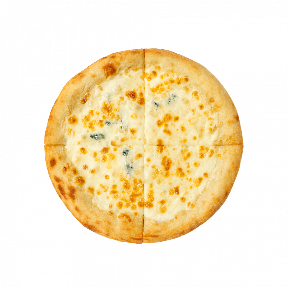 Мини-пицца с насыщенным вкусом четырёх сыров — моцареллы, пармезана, дор-блю и нежного творожного. Свежая руккола добавляет лёгкую горчинку и баланс вкуса.