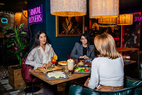 Меню создано так, чтобы каждый нашёл своё. Нежная телятина с беби-картофелем, фирменные бургеры с фермерским мясом, пиццетты с хрустящими бортиками и щедрой начинкой, паста с морепродуктами, хачапури и хинкали, сеты к вину или пиву, ароматные супы, запечённое мясо в горшочках, блюда на компанию, домашние соусы и актуальные закуски. Есть выбор свежих десертов и кофе.